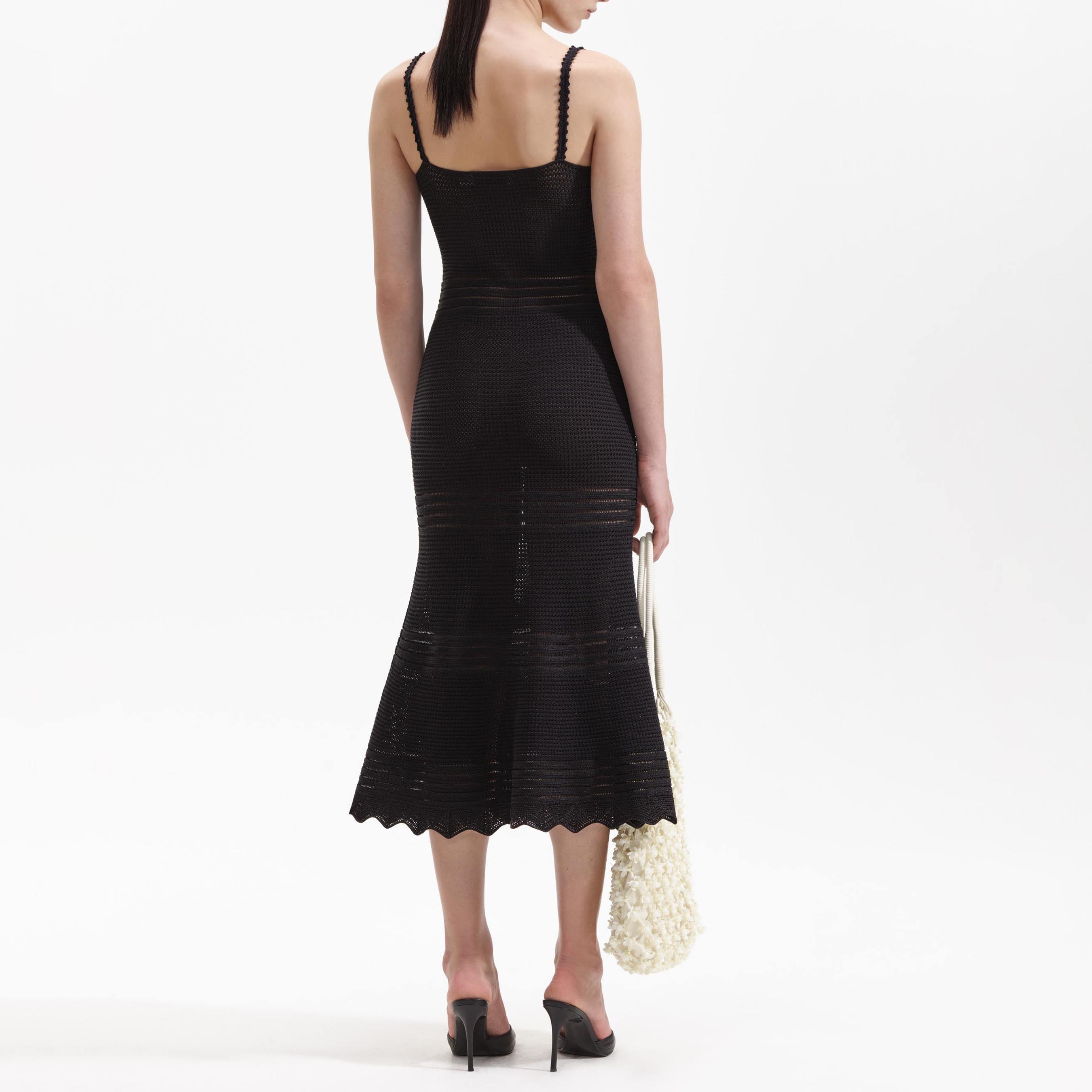Black Crochet Cut Out Midi Dress 52938320