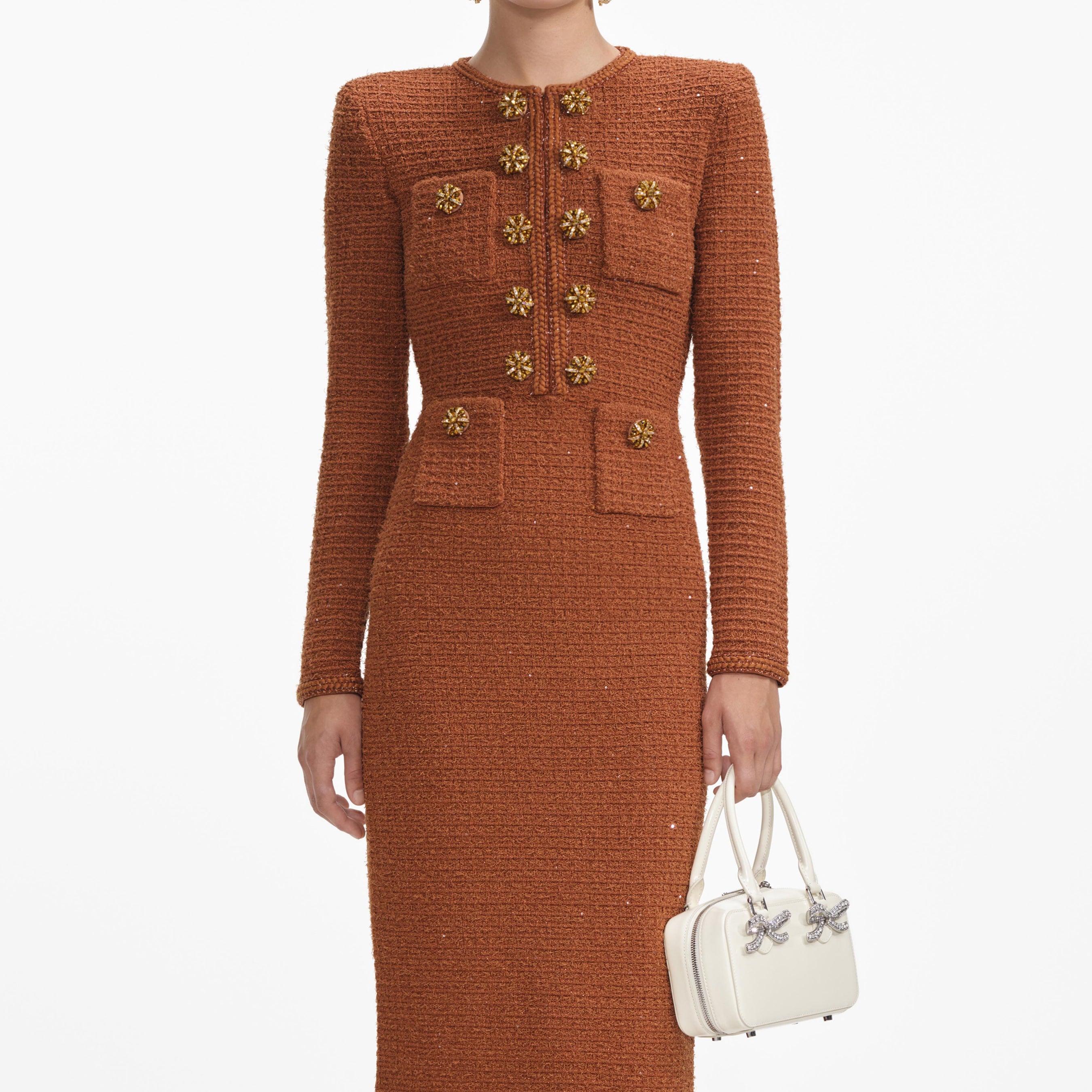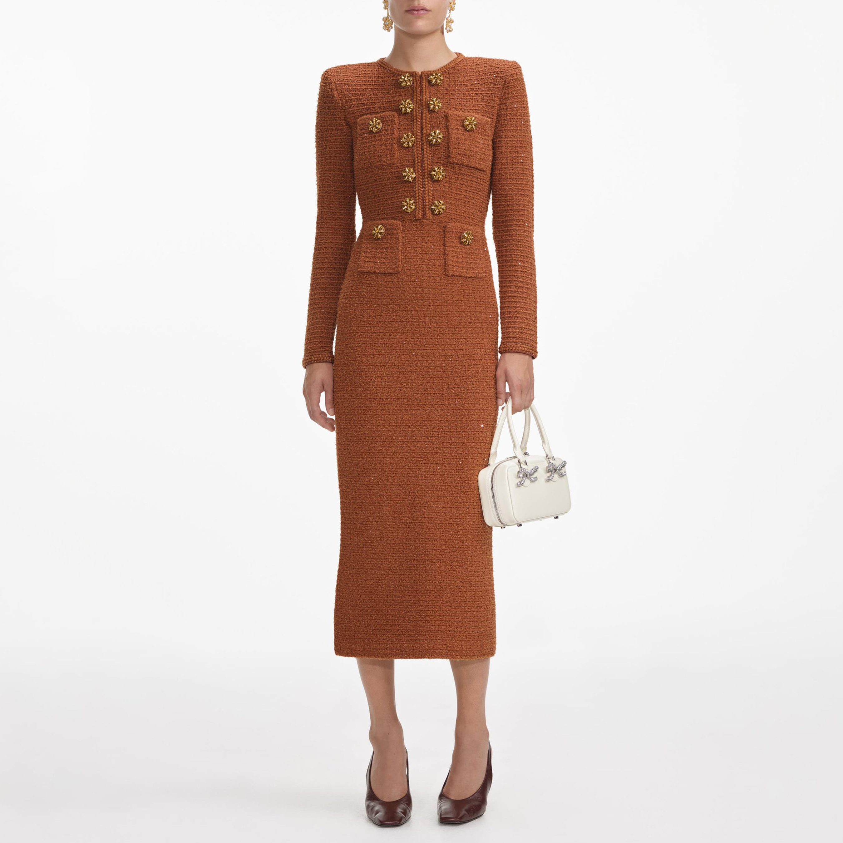 Brown Textured Knit Midi Dress 52944031
