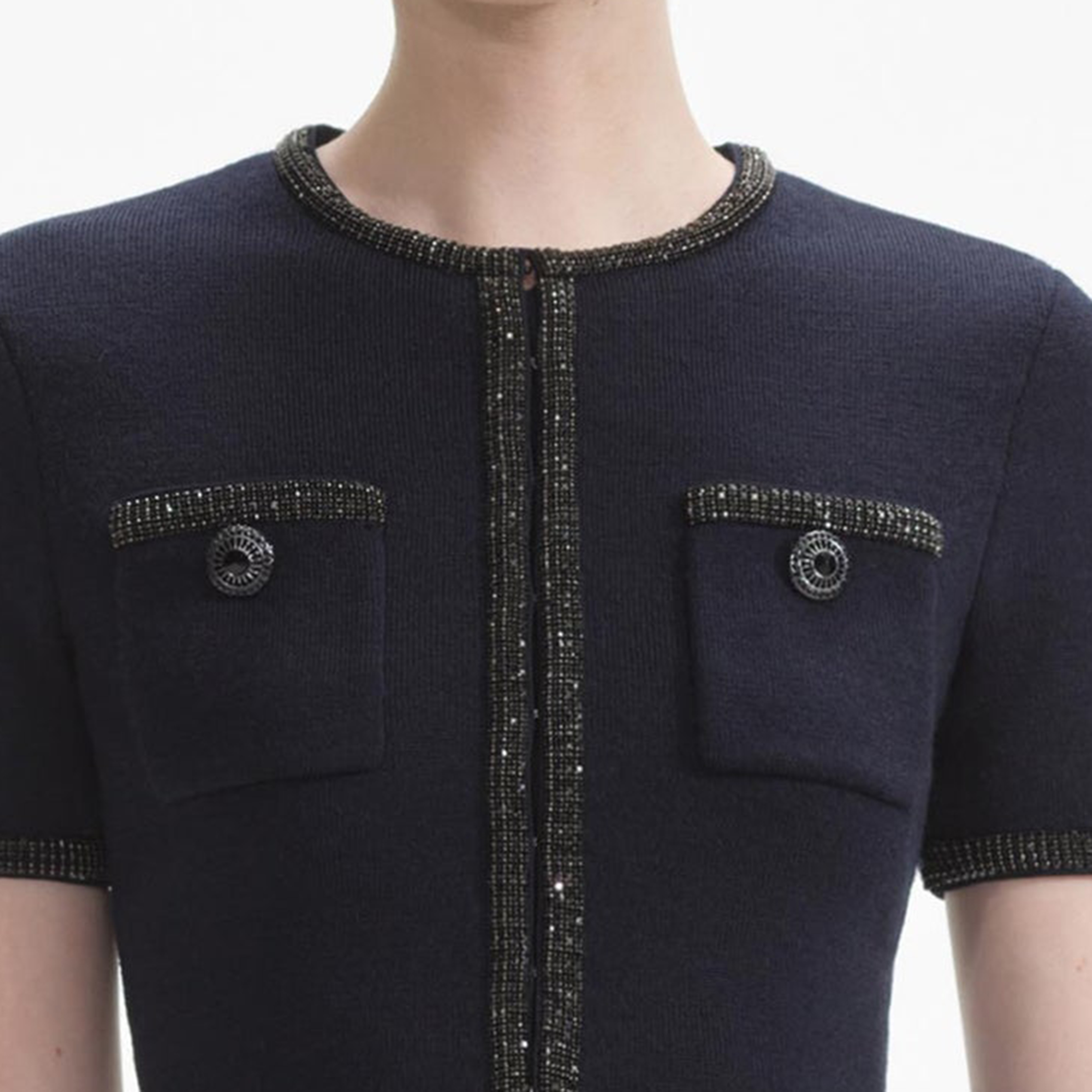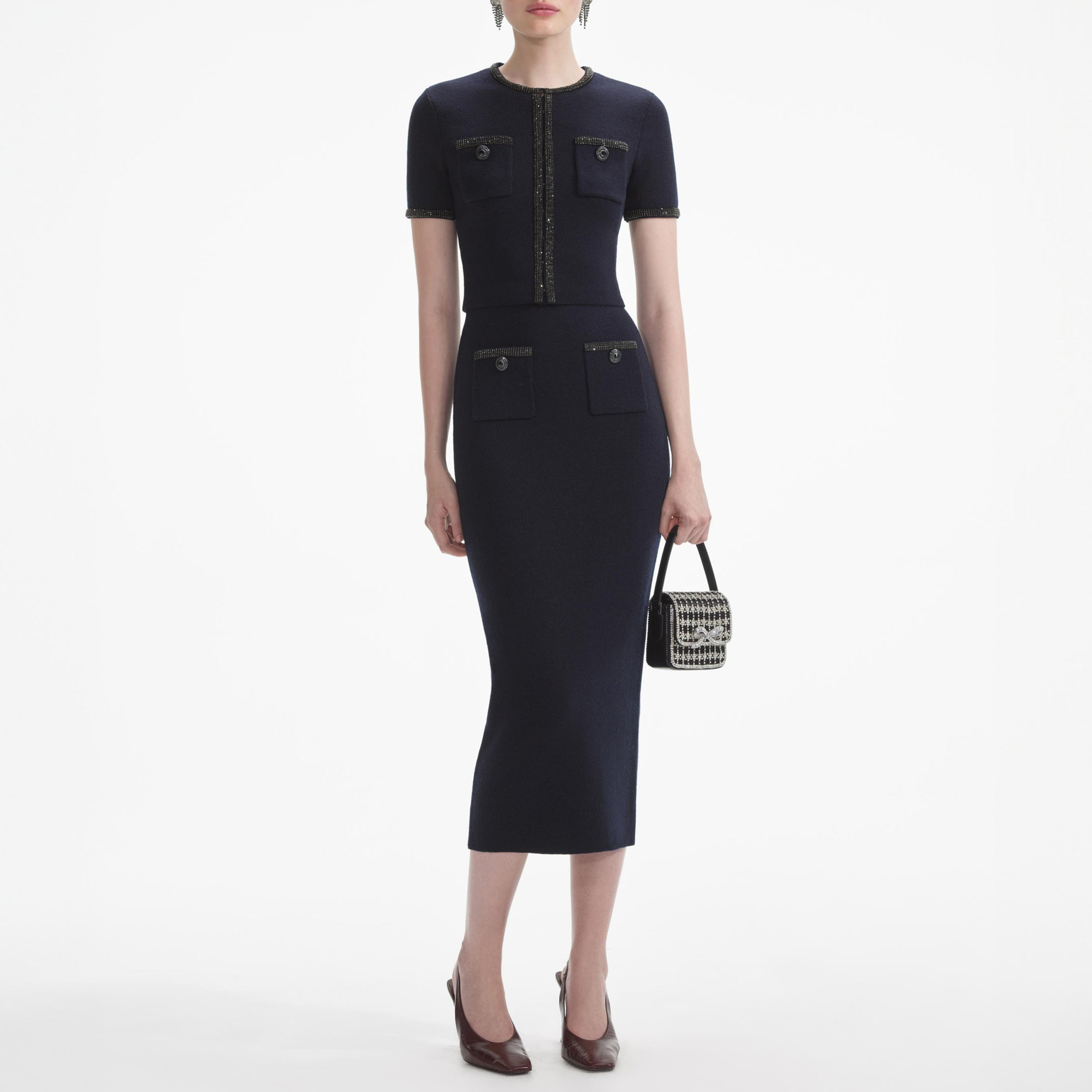 Navy Embellished Knit Midi Skirt 52937493
