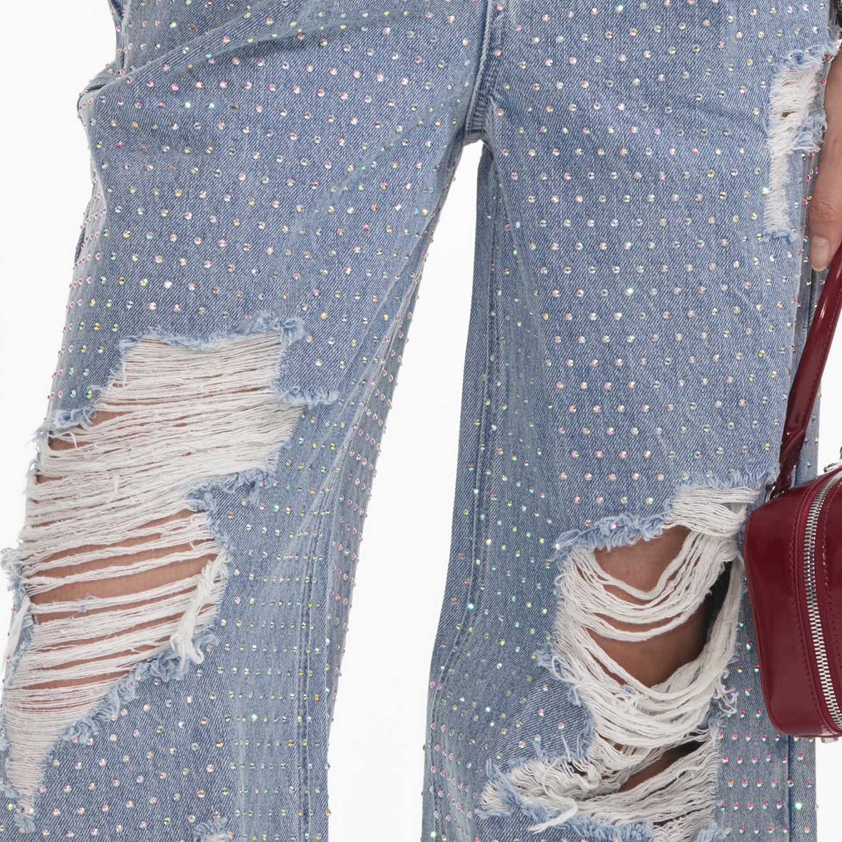 Rhinestone Ombre Distressed Jeans 52936799