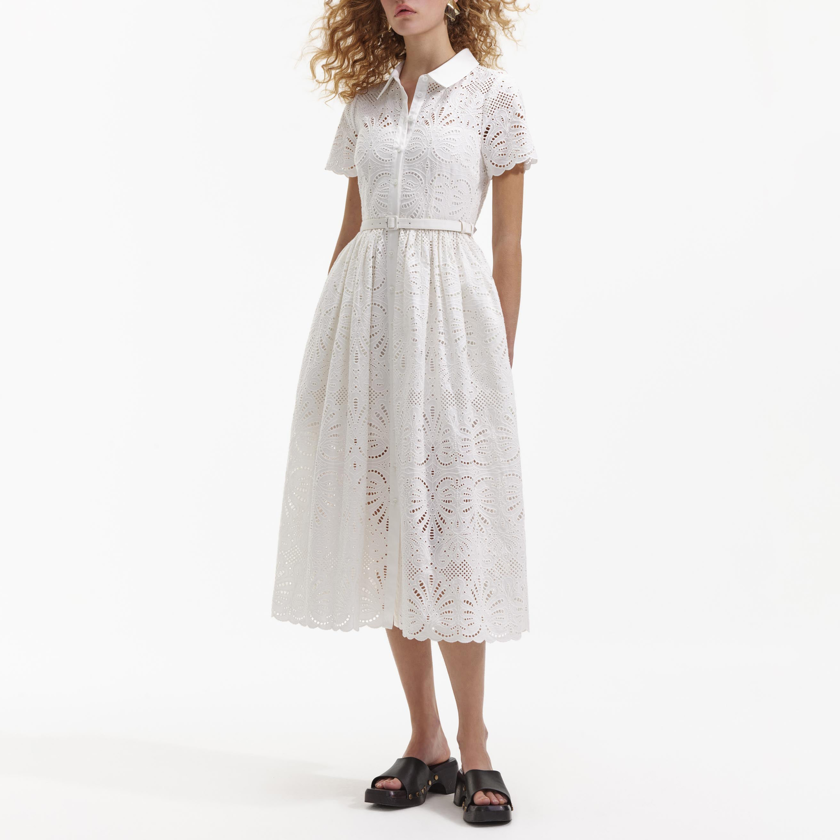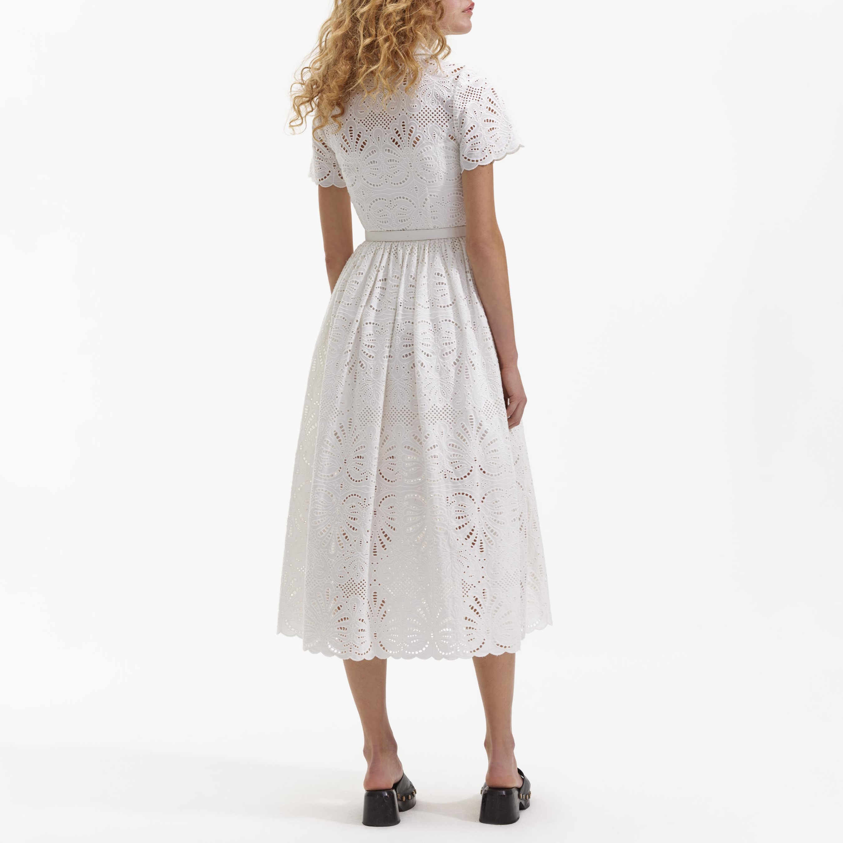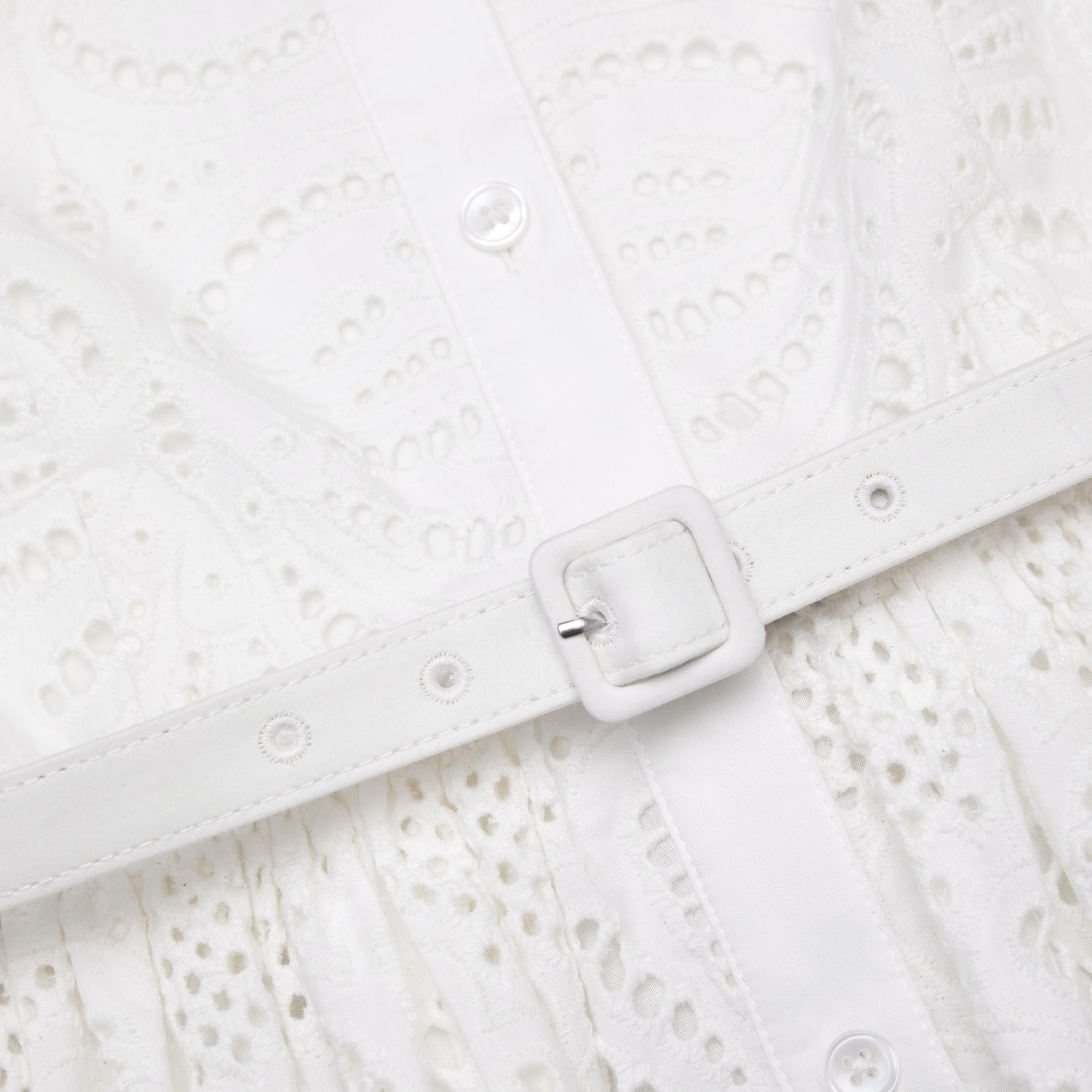 White Cotton Embroidery Midi Dress 52939299